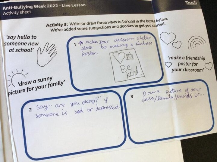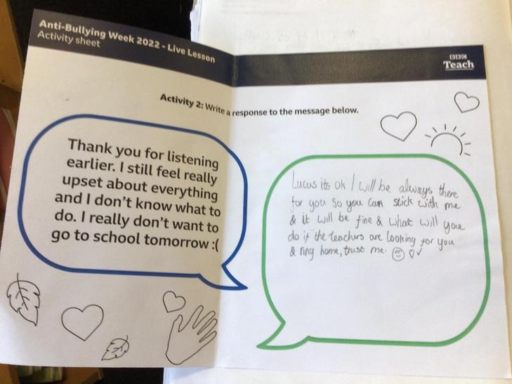 We then watched the BBC Anti-Bullying video and joined in with the activities relating to the video.