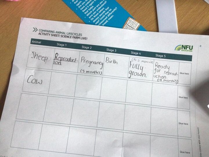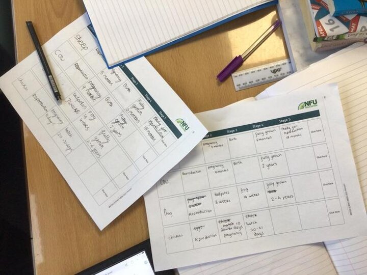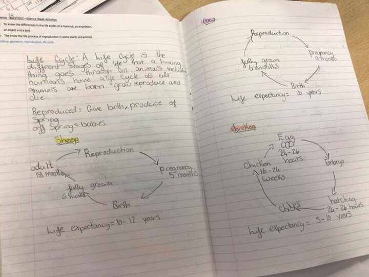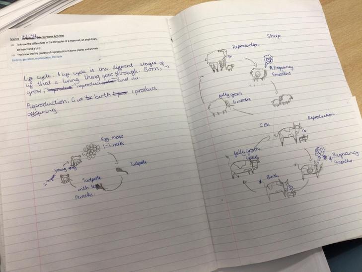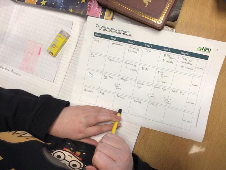 We wrote down notes about the life cycle of the cow and the sheep. We then did our own research about other life cycles.