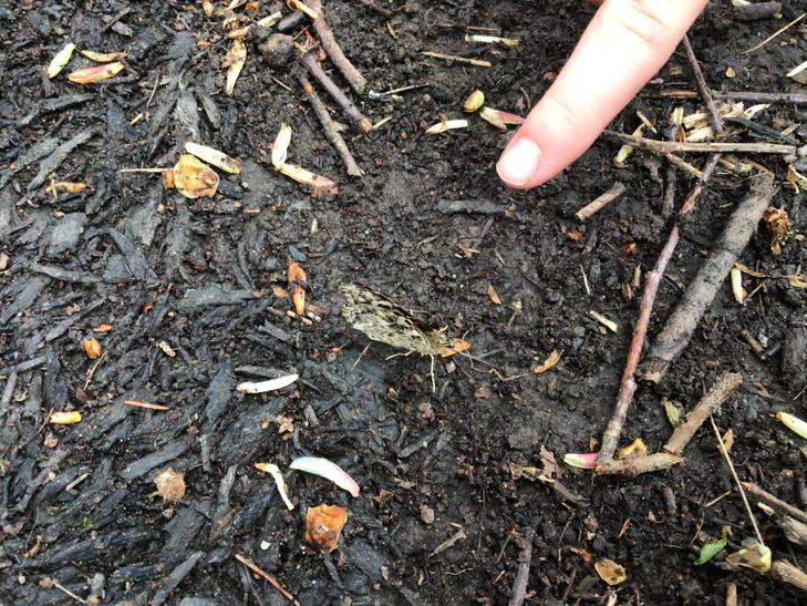 They then started to come out of their chrysalis. Two happened while we were at school so we got to see how the butterfly wings start quite small and then grow and develop in colour. Once all 5 had emerged from their chrysalis, we monitored them and fed them for a few days before releasing them in our den area surrounded by trees to keep them safe.