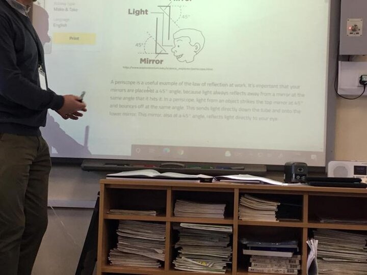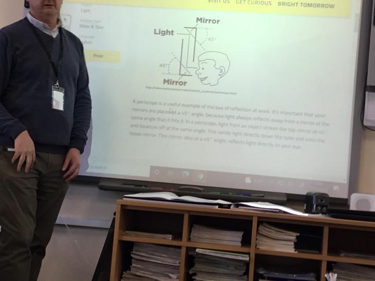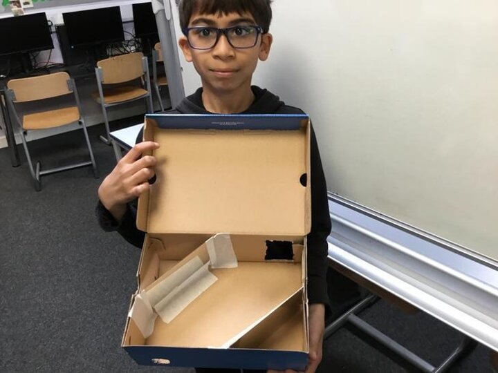 In Year 6 science, the children have been learning about light. In order to link into this during our Science week the children were given the chance to make their own working periscopes. The children were shown how periscopes can reflect light in order to allow a viewer to see above their direct line of sight. Each student was then given a box and two mirrors and had to construct their periscope themselves, before then being able to try them out and see how well they worked!