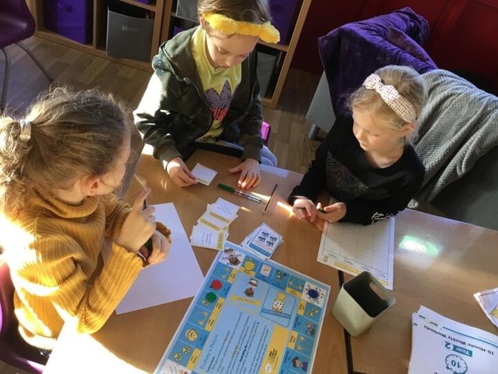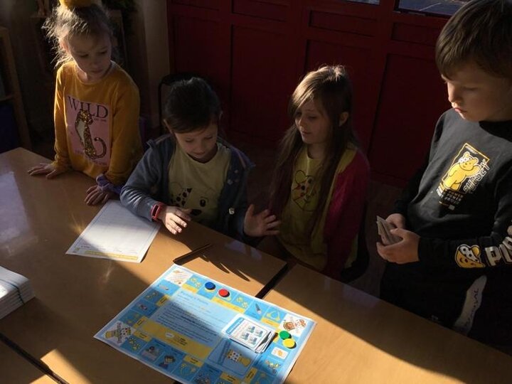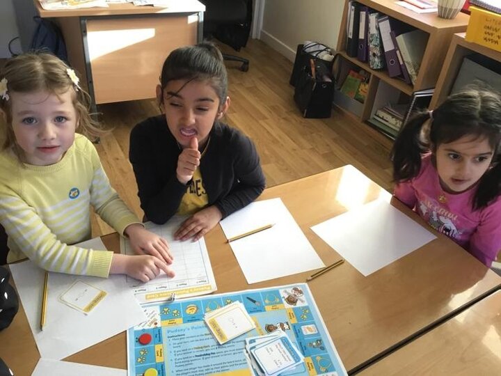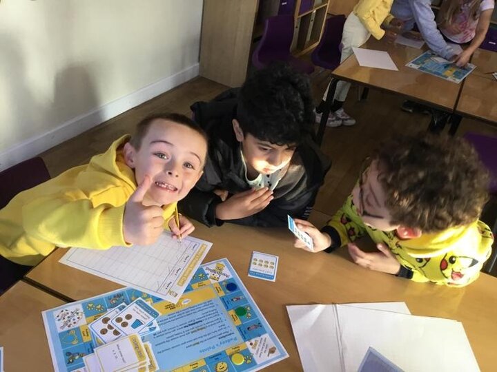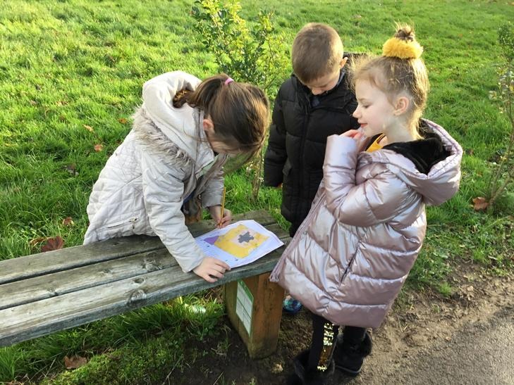 Year 2 worked with the children in Reception to go orienteering and find Pudsey around school. We played a Pudsey fundraising board game. Each game card had a maths question for us to answer before we could move our counters.