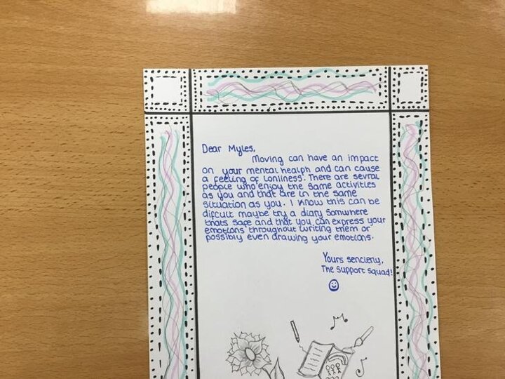 We looked at possible situations which may make others feel lonely. This may include starting a new school or now feeling part of something. We wrote letters back to children who may be feeling lonely due to their circumstances.