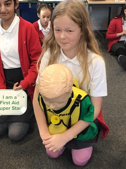 The children loved this practical session covering what to do with burns, how to keep a break safe until help arrives, how to put pressure on a bleed and how to put a person in to the recovery position.