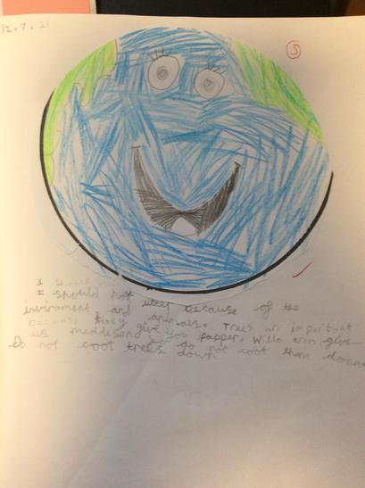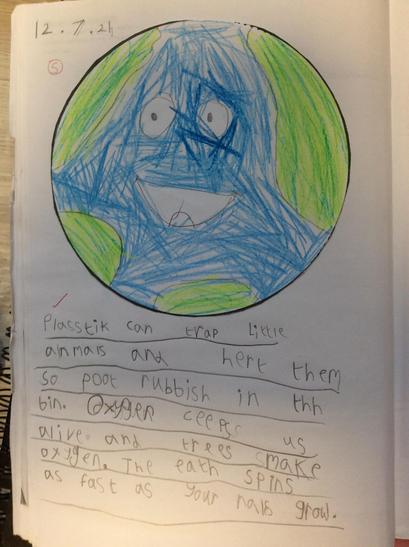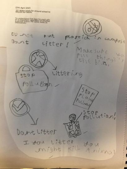 We now recycle in our school and our fruit goes to the Forest School area for the wildlife, we have paper boxes in the classrooms and we bring in old clothes for Forest School and wellies for others to use. I have brought some of my old wellies, because my feet had grown and I got new dinosaur ones. ( MZ)