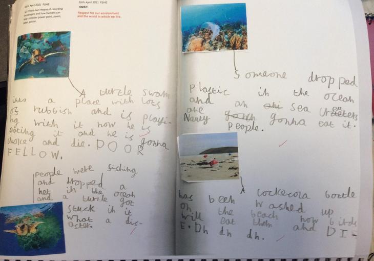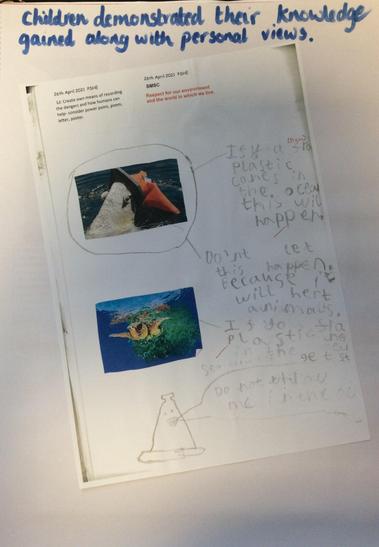 We had a story about 'The Lighthouse Keeper's Mystery' it is about a man called Mr Grinling and we had had lots of stories about this man. One day he sees people putting plastic and rubbish in the sea. We used the Ipads and found out about the litter in the ocean. Did you know that fish eat the plastic and that makes them poorly and sometimes they die. HA)