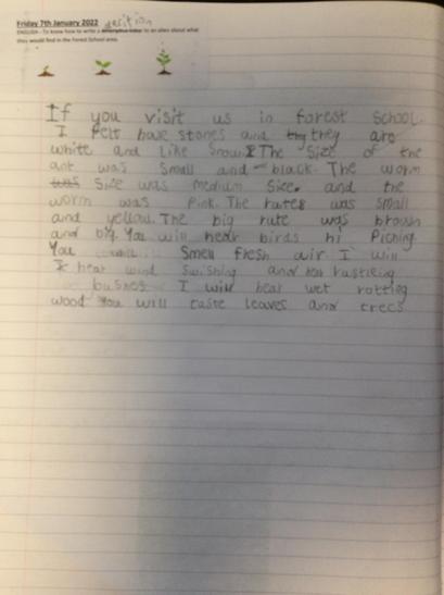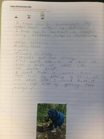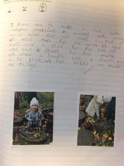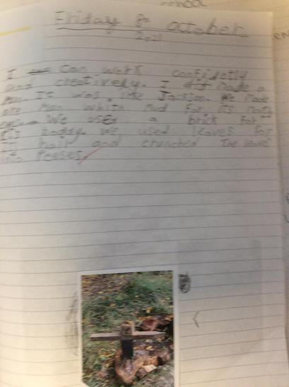 We have a new area in our school and its Forest School. It is a big space outside and we have one afternoon or morning every week. (JS)