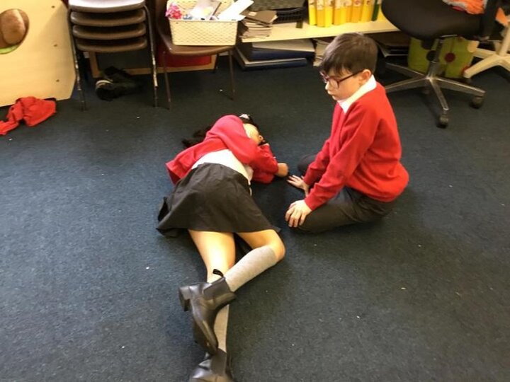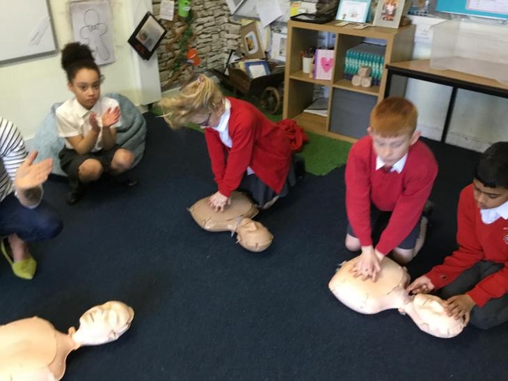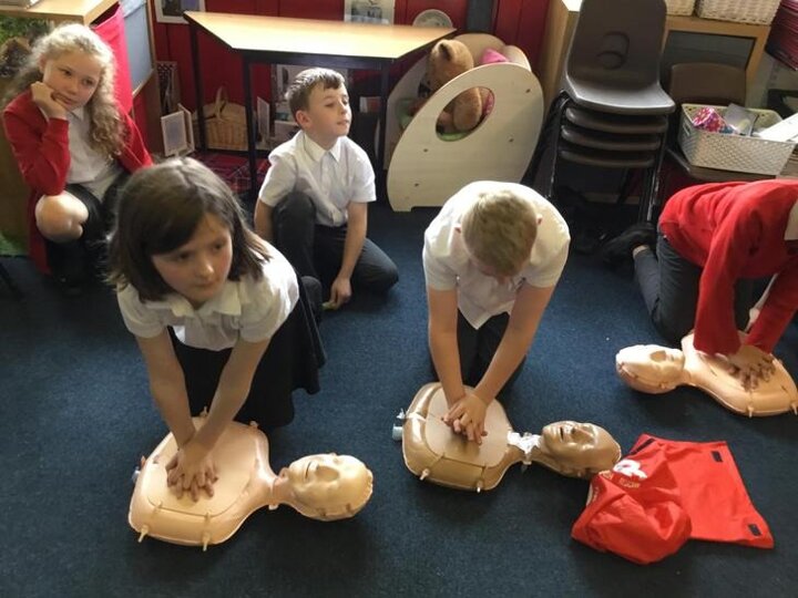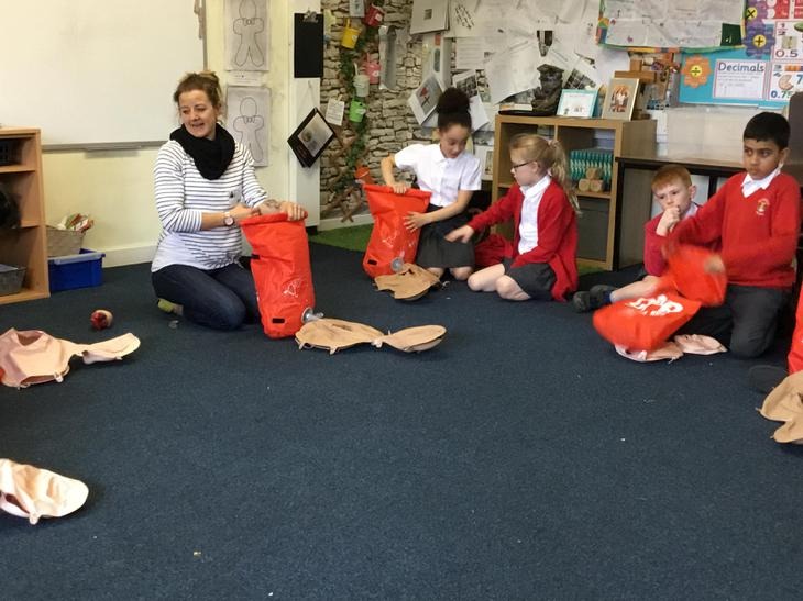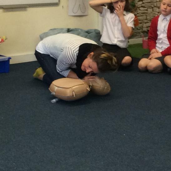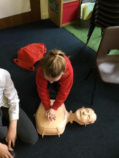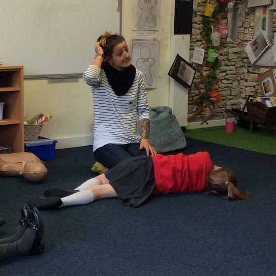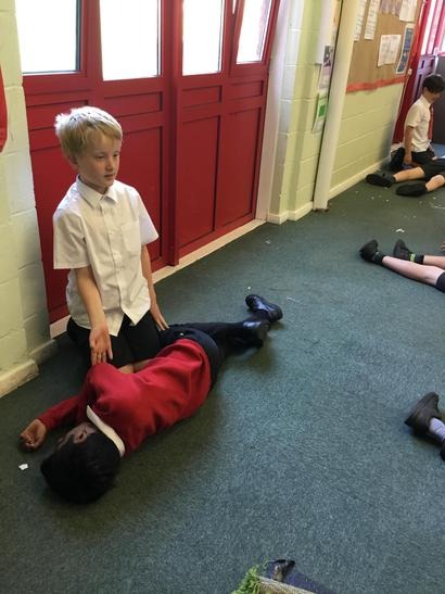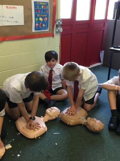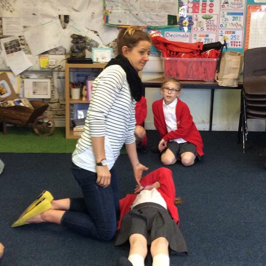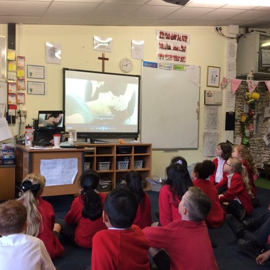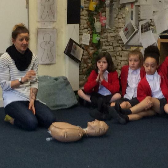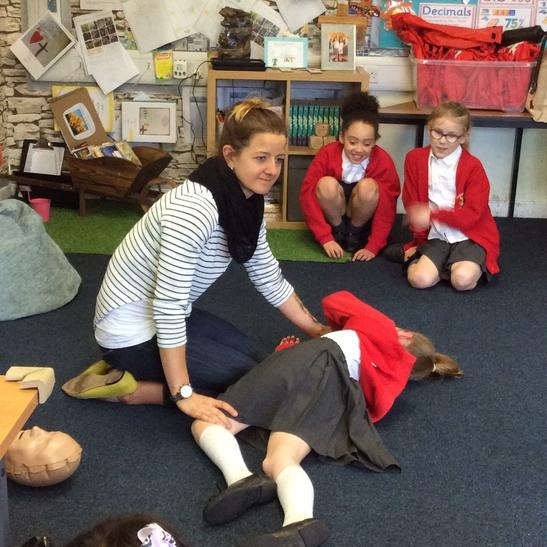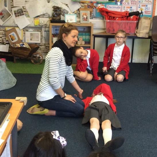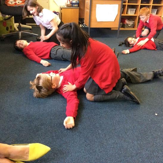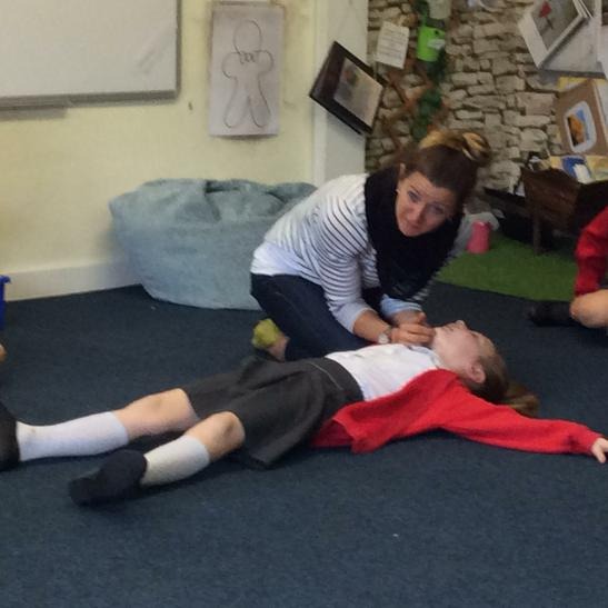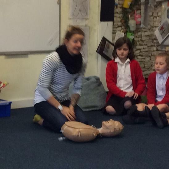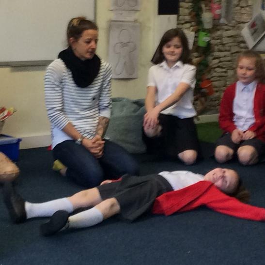 Hi everyone, we had a visit from Sian Edwards from Heartbeat and today we were 'mini medics'. This was great fun but also serious. We started by watching video clips of accidents and how best to help someone. We all knew that 999 was the emergency number but then Sian told us that you could also dial 112. We learnt what to do if someone was bleeding. We then learnt how to put someone in the recovery position and one of our friends had to work with the teacher because we were an odd number, but he was able to put an adult into the position. It was great fun, but also we learnt about something serious and that one day we might need. After that we then learnt about CPR and the importance of keeping a steady rhythm. We had the dolls to practice on and this was hard work especially on the heel of your hands and shoulders. Sian gave us an emergency booklet to take home once we had completed our work in school. In school we created mini medic information leaflets with photographs of the afternoon on them. Below are our pictures of a great afternoon.