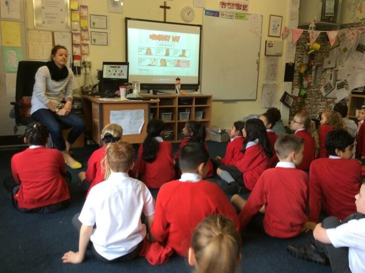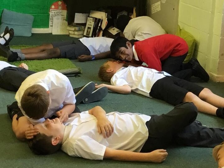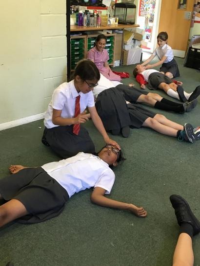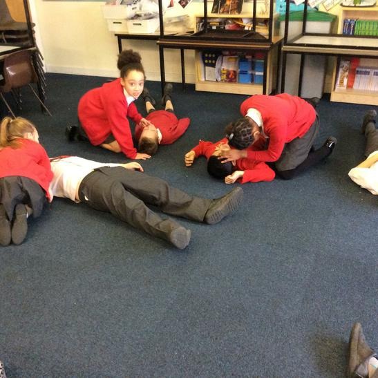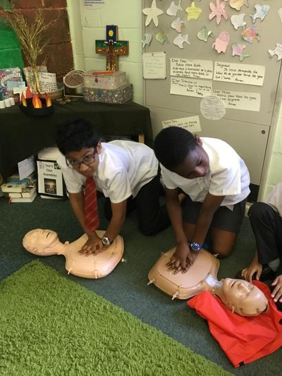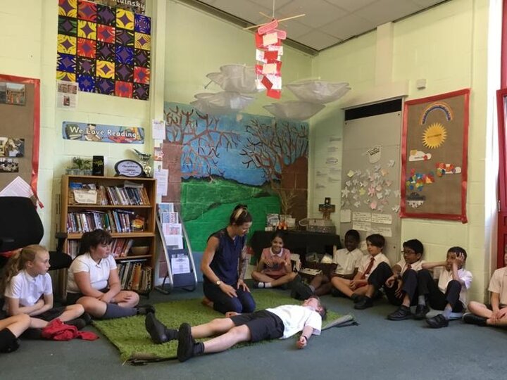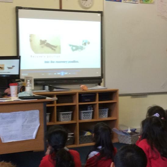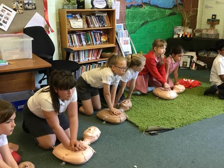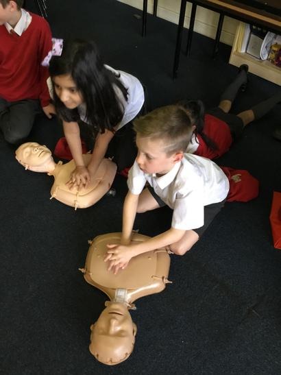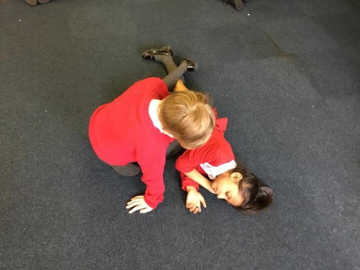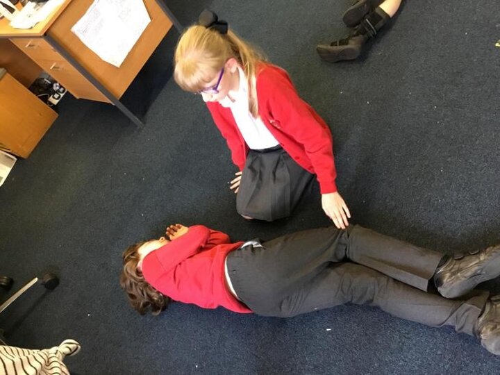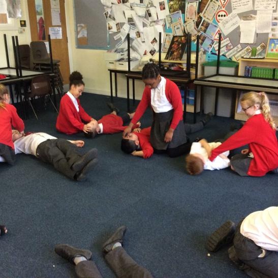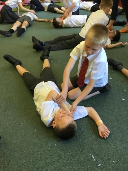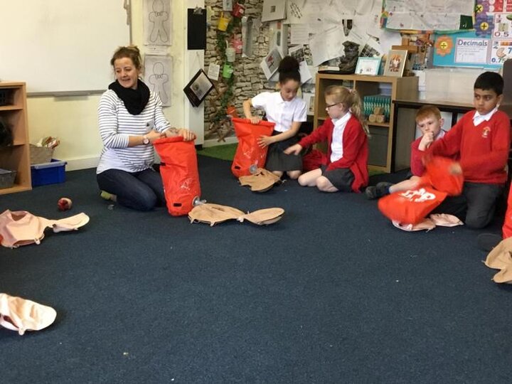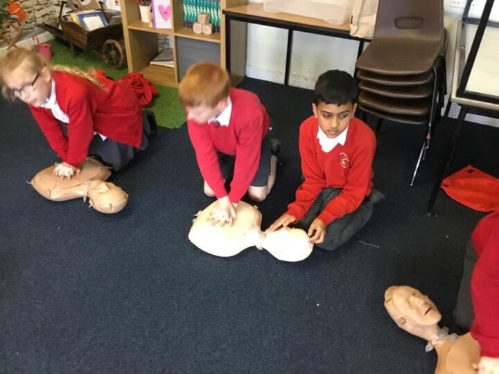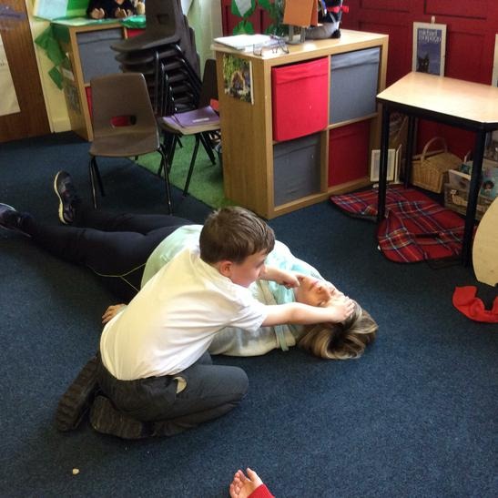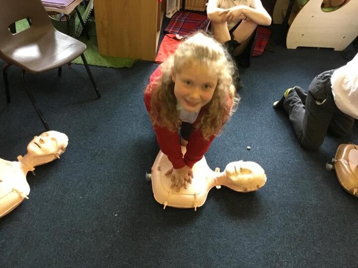Hi everyone, we had a visit from Sian Edwards from Heartbeat and today we were 'mini medics'. This was great fun but also serious. We started by watching video clips of accidents and how best to help someone. We all knew that 999 was the emergency number but then Sian told us that you could also dial 112. We learnt what to do if someone was bleeding. We then learnt how to put someone in the recovery position and one of our friends had to work with the teacher because we were an odd number, but he was able to put an adult into the position. It was great fun, but also we learnt about something serious and that one day we might need. After that we then learnt about CPR and the importance of keeping a steady rhythm. We had the dolls to practice on and this was hard work especially on the heel of your hands and shoulders. Sian gave us an emergency booklet to take home once we had completed our work in school. In school we created mini medic information leaflets with photographs of the afternoon on them. Below are our pictures of a great afternoon.