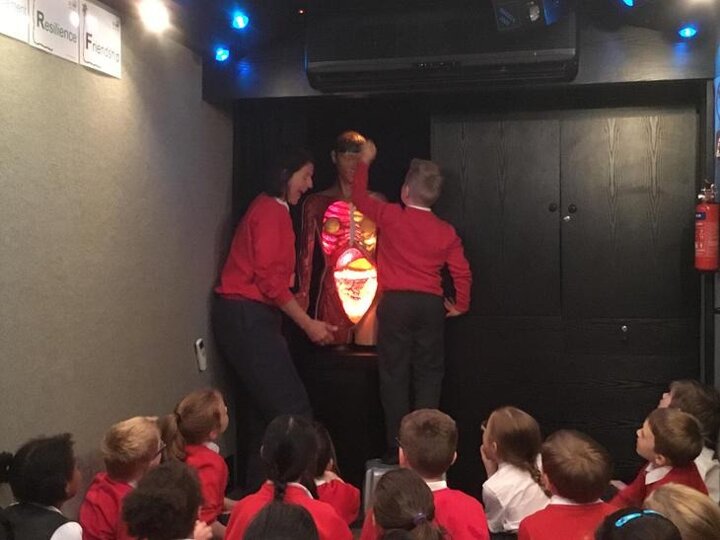 On Thursday 10th May, year 3 had a visit from the Life Bus. We learned all about our body, including our organs and bones. We looked at what happens to our body if we don't make the right choices, such as, making sure we eat the right foods and cleaning our teeth.