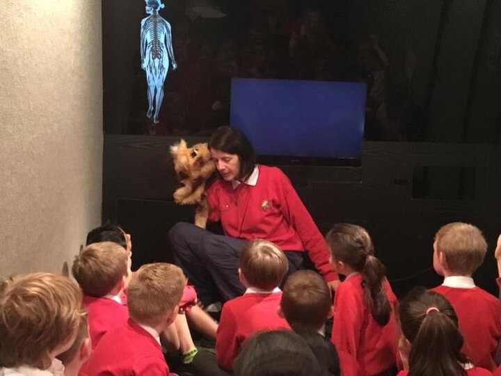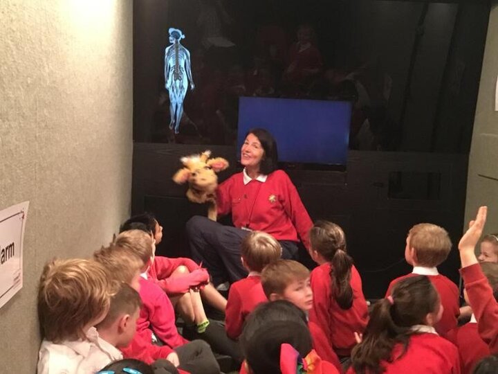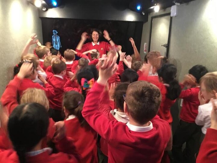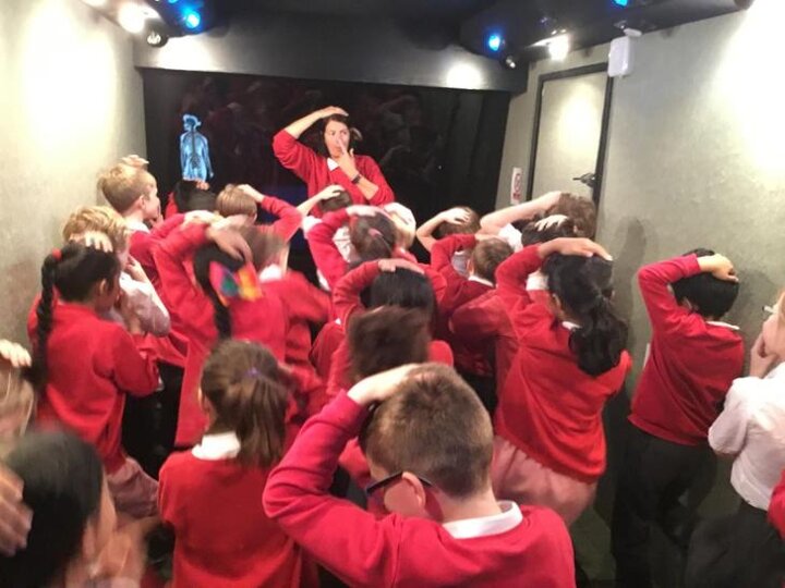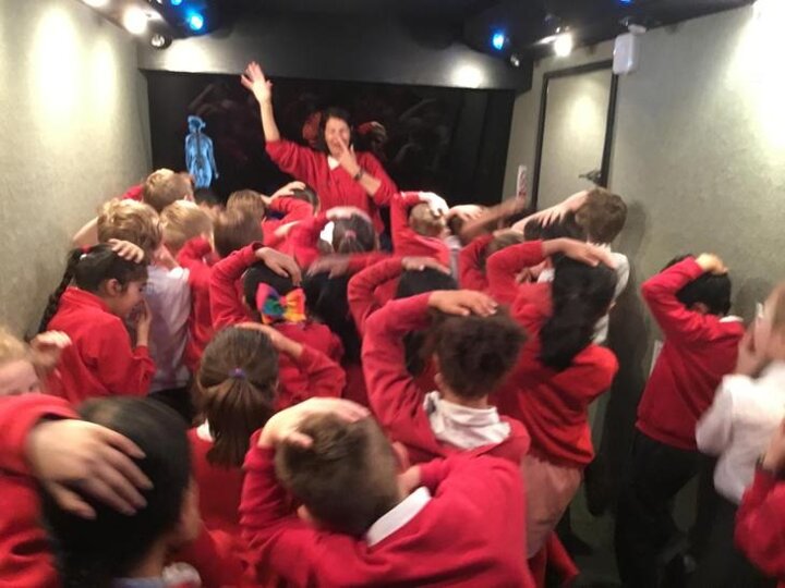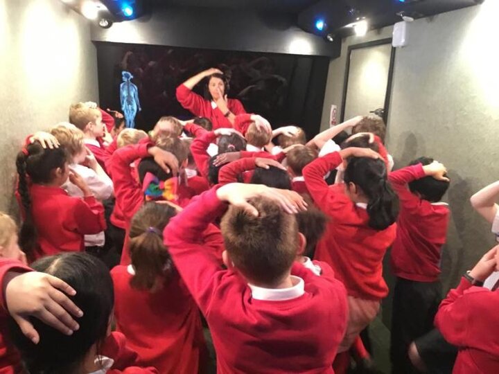 Suddenly, all the lights went off! This was because the brain at the front was talking to us and showing us what the brain looked like but also all the nerves that our in our body.