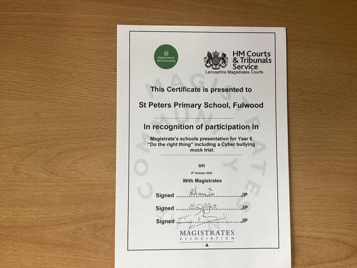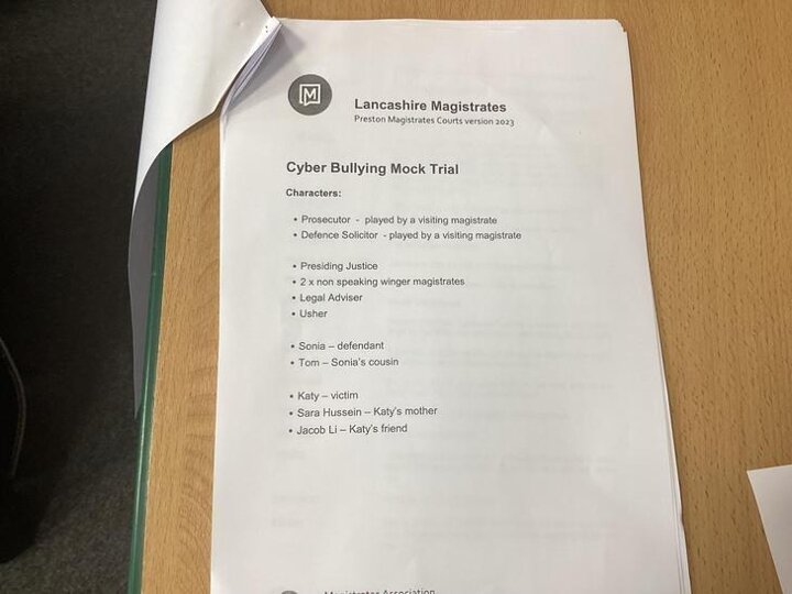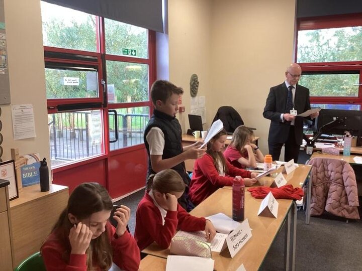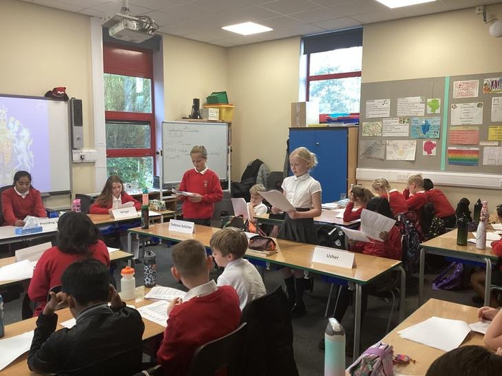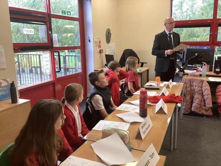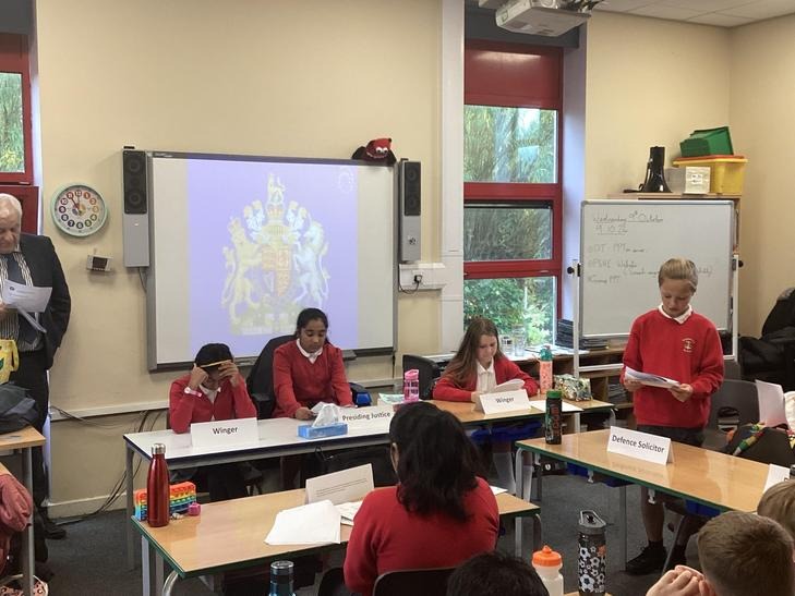 We took part in a mock trial which revolved around Cyberbullying. The children were given a script and acted out the courtroom scene with the help of Paul and Ian. Some of the children played parts of the accused, legal adviser, victim and defendant.