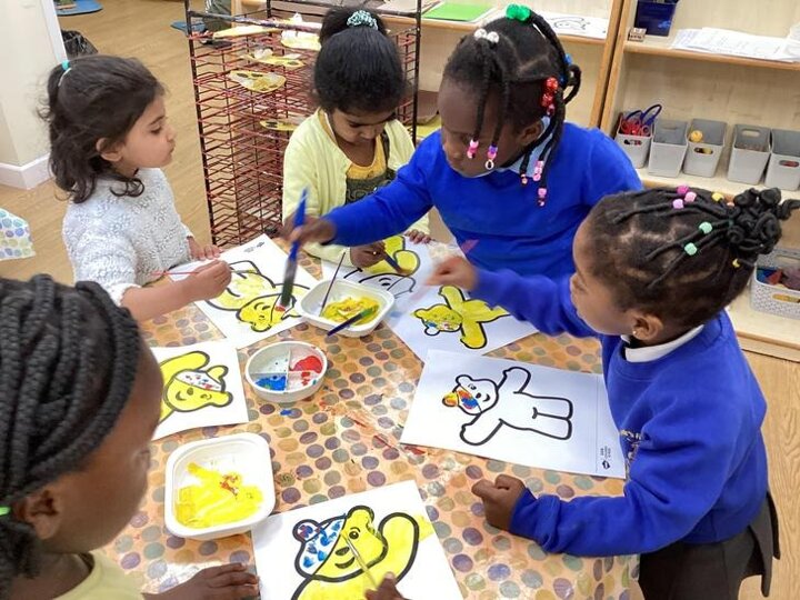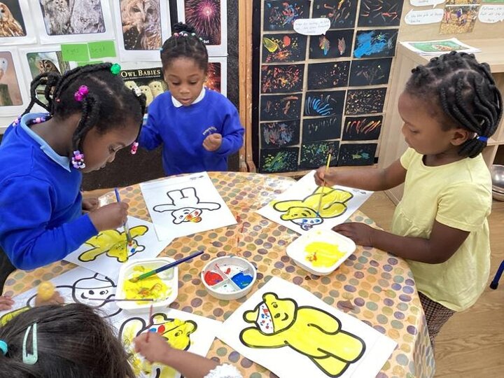 In nursery, we looked at how we are all different. We all like doing different things, we like different foods and our handprints are all different.