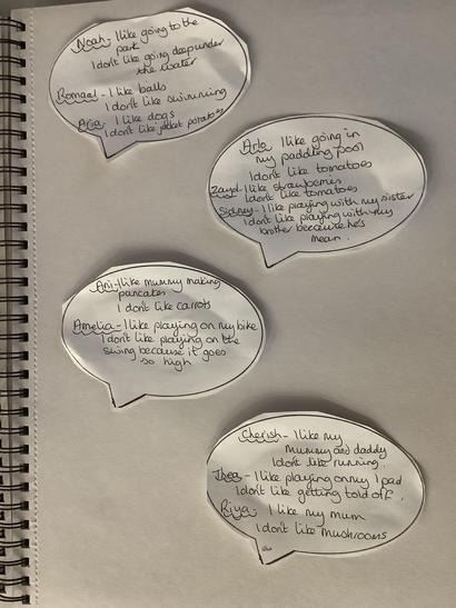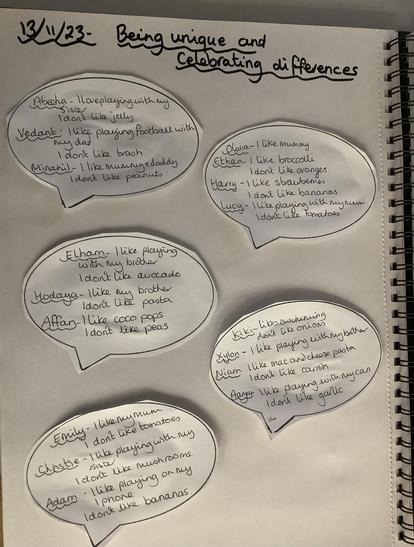 During our anti bullying day we introduced the word unique and different. It means nobody is the same and that we are all different which is a good thing to be. We talked about what we liked and disliked.