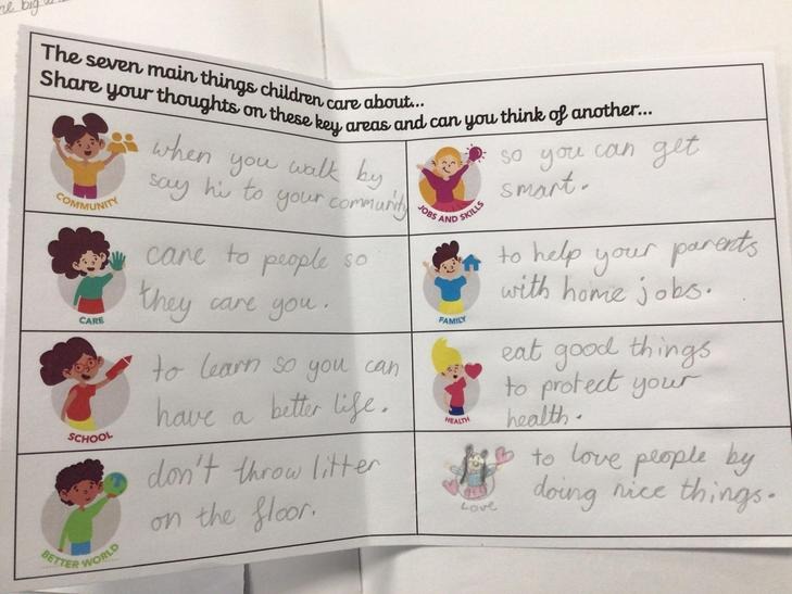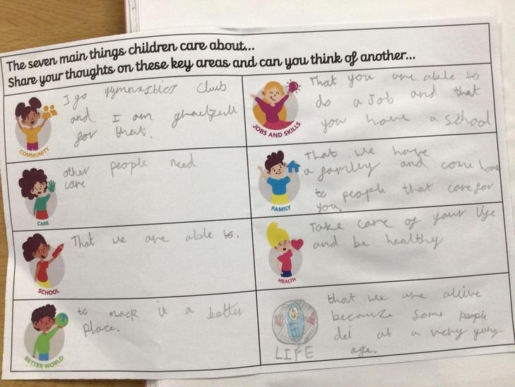 We then discussed what the 7 main areas were that children cared about and shared our thoughts on them. We even thought of an area that we individually felt passionate about too.