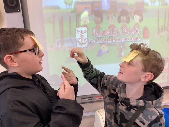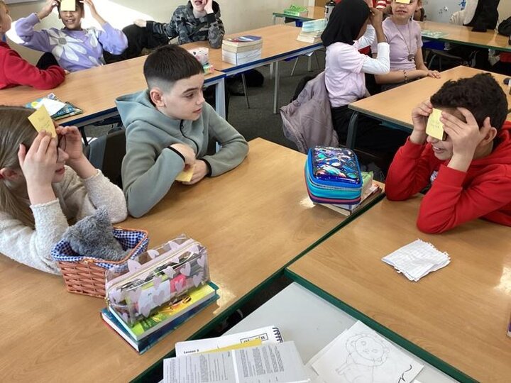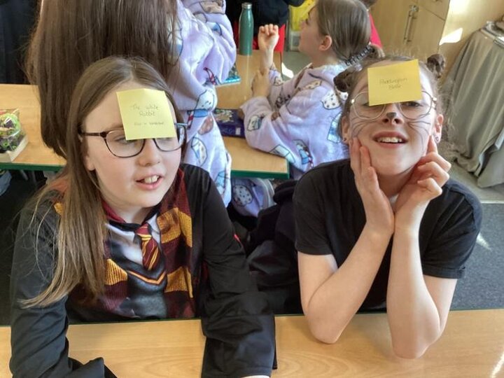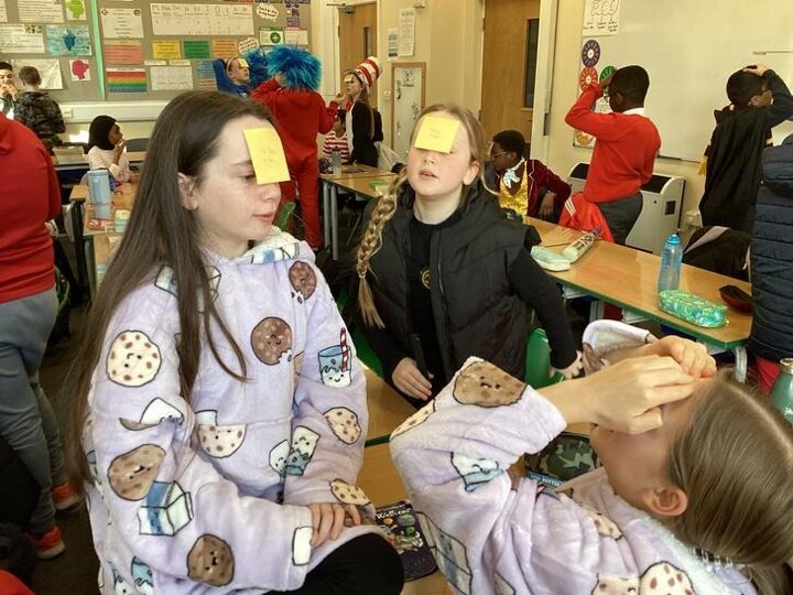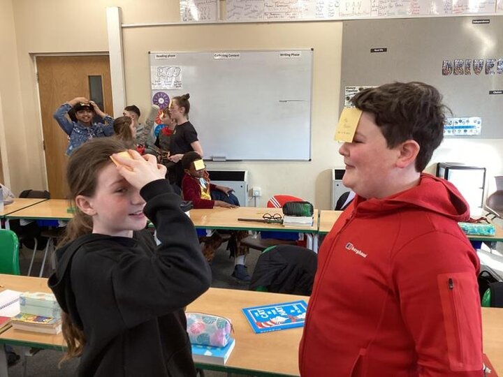 We played a game where we had to guess which book character we were. We could only ask questions with a yes or no answer.