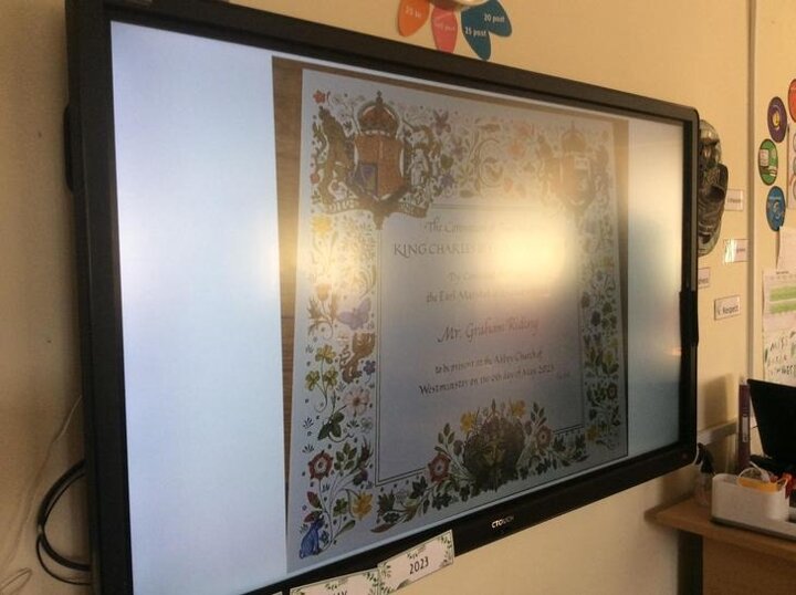 Mr Riding came in to share we us about being at the Coronation. He showed us pictures of the letters and invitations he received.