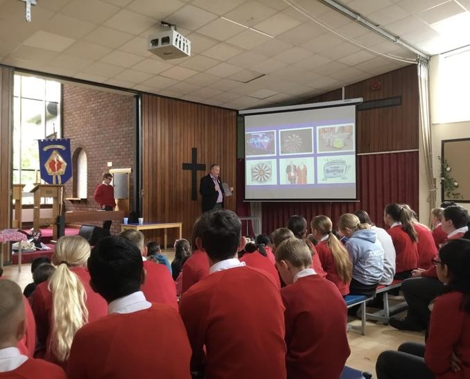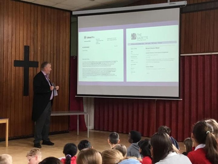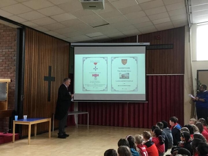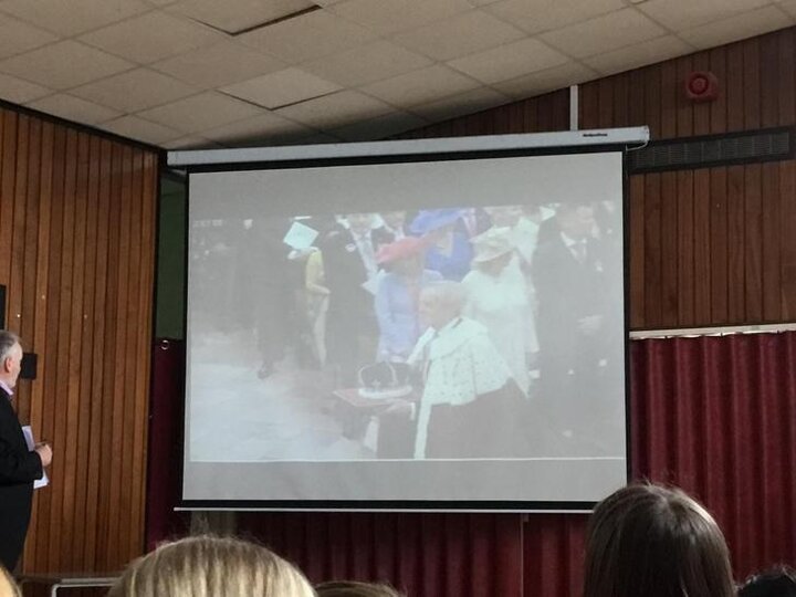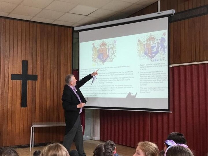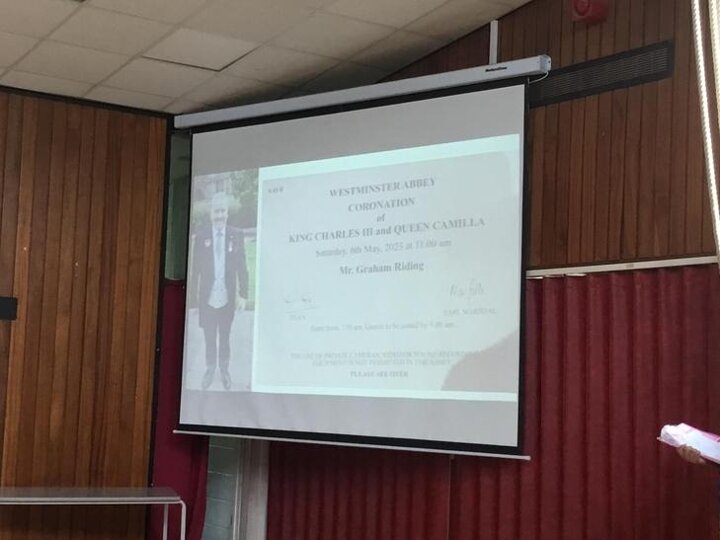 Today we listened to one our school governors , Mr. Riding, to talk about his recent visit to Westminster Abbey to attend the King’s Coronation.