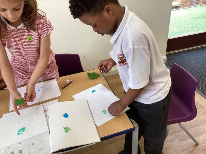 Today we have been exploring printing using things that we have found outside. We carefully painted the object and then placed it onto the paper. We were proud of our prints.
