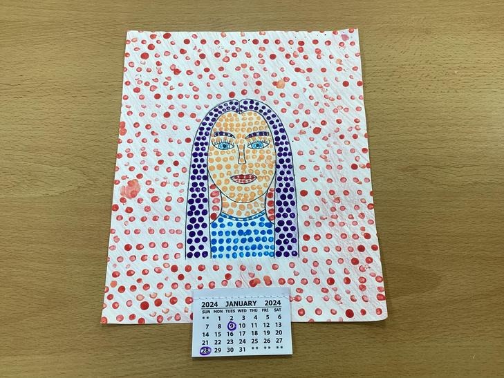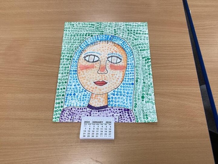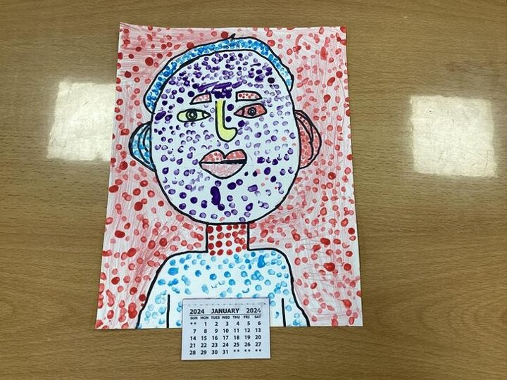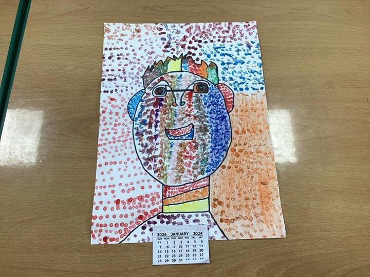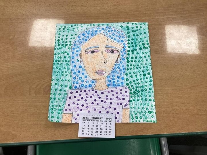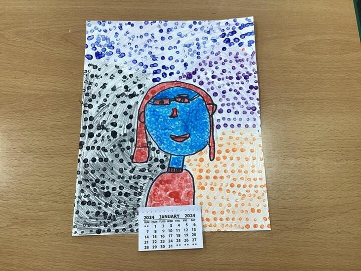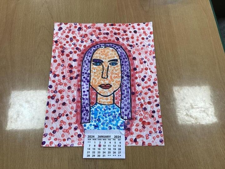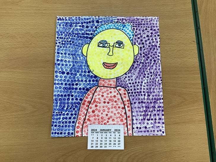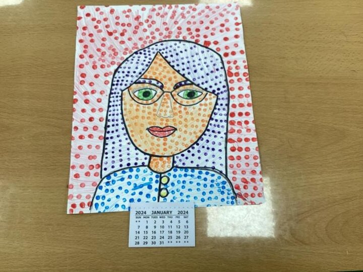 We looked at one of his pieces of work titled, ‘Girl With Hair Ribbon.’ We read about him and learnt that he used a technique called Ben Day dots on part of his work. We used this technique to create our own work and used Ben Day dots and bold block colours like Roy Lichtenstein did.
