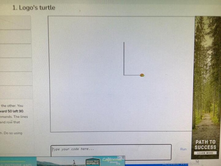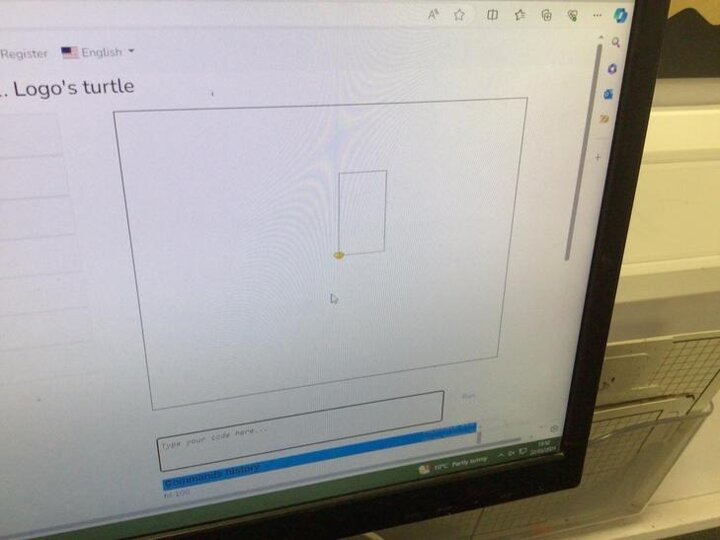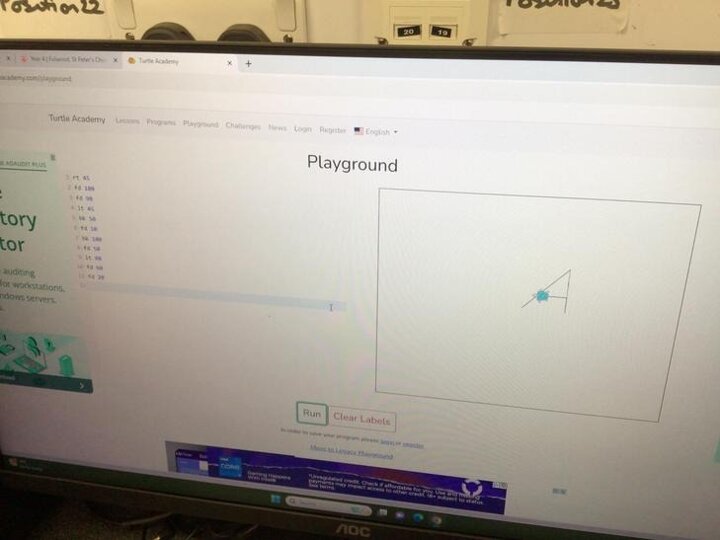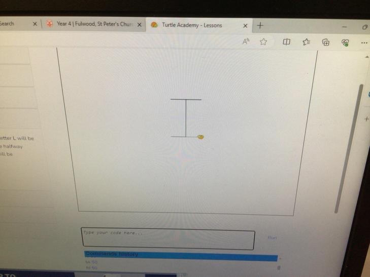 At the start of our coding unit, we typed instructions to our turtle to move forward, back and in other directions to write letters of our name.