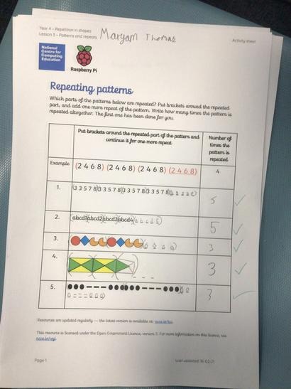 When looking at algorithms, we first looked at what real life repeated patterns/instructions we see and then had a go at spotting what the pattern was and then had a go at repeating it ourselves.