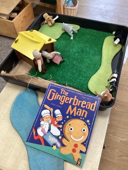 The Gingerbread Man After reading the Gingerbread Man some children chose to use dough and make biscuits, rolling and cutting dough.