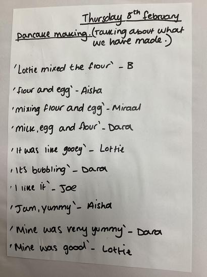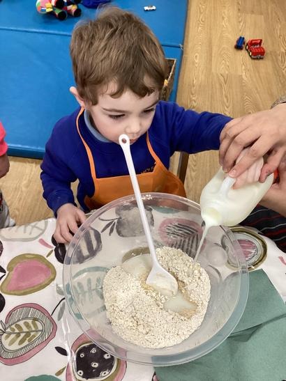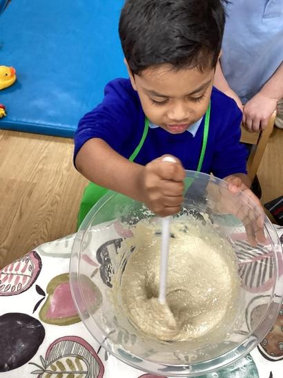 Nursery have been mixing ingredients to make a batter and observed changes as the batter was heated.