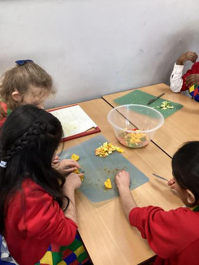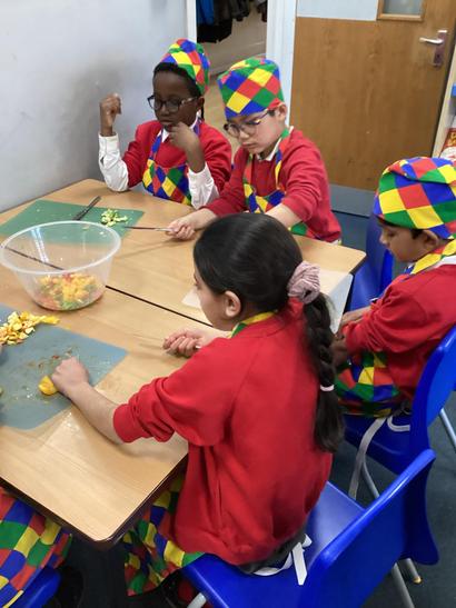 Year 3 have been independently slicing, dicing, grating and mixing ingredients to fulfil their Mother’s Day pizza design.