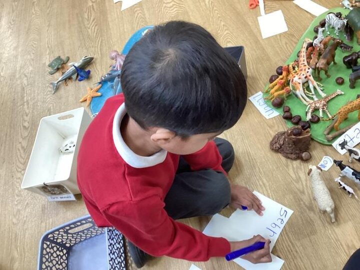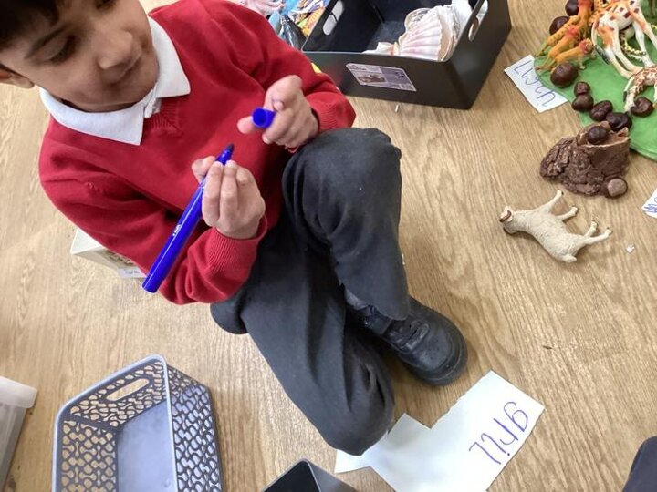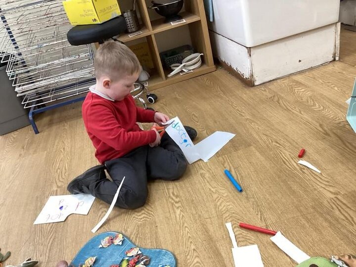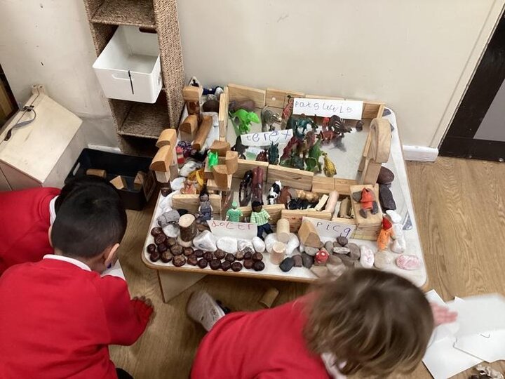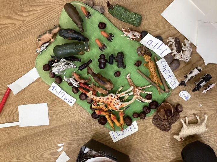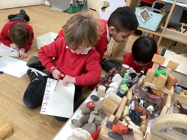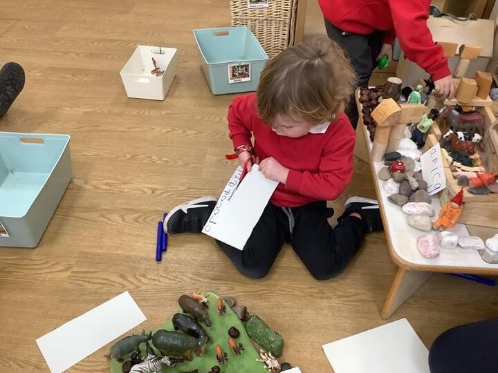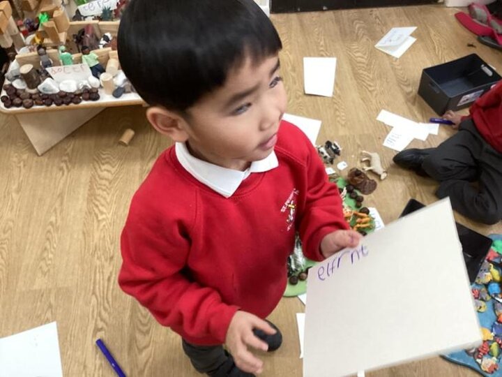 This afternoon the children have been working in the small world creating their own. We challenged them to put some labels to show what some of the things were. We have tried really hard to use our phonics.