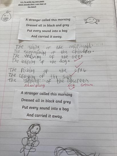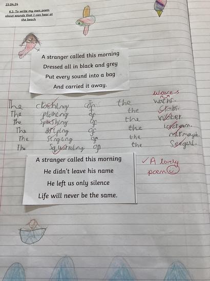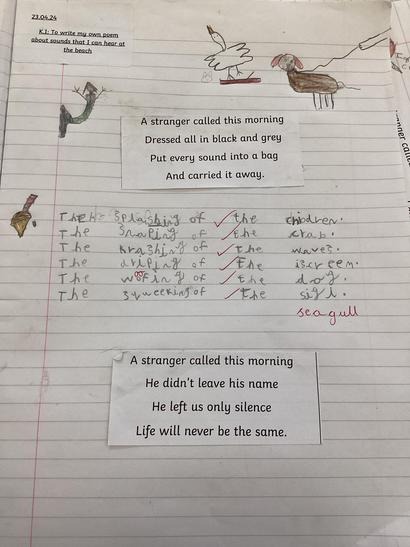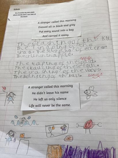 We have been reading ‘The Sound Collector’. The children write their own poem based on the sounds that they would hear at the seaside. They really enjoyed writing their own poems and choosing their own sounds.