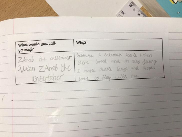 We had a choice of what name we would want to give ourselves if we became King or Queen of Narnia. We gave reason why we had chosen that name.