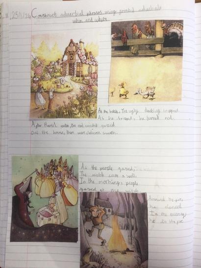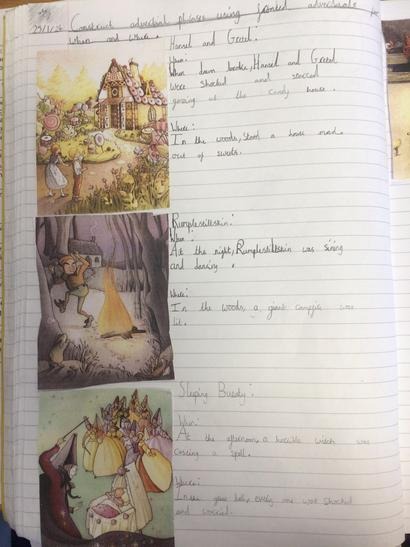 We created our own adverbial phrases for time and place using different scenes from well known fairy tales.