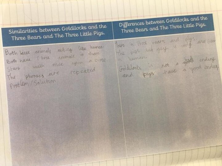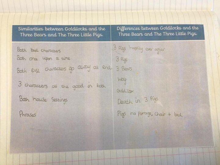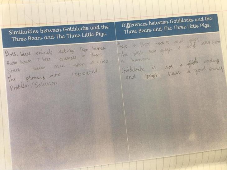 Within our fairytales unit, after reading two common fairytales, we then worked in pairs to compare the two fairytales to identify themes.