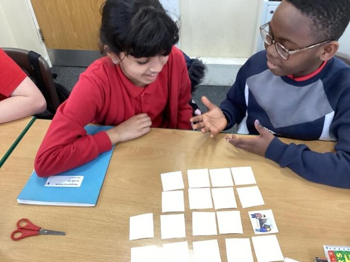 We worked in small teams to play a French game. We matched up different sentences where the verbs had changed spelling.