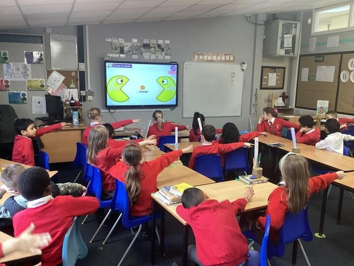 We worked in teams to play games to help us remember different ways of saying goodbye.