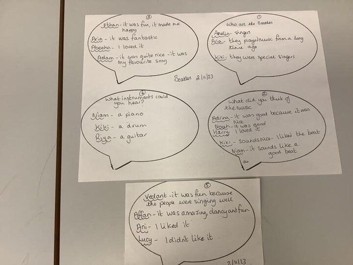 The children listened to the new Beatles song Then and Now. We talked about it after it had finished.