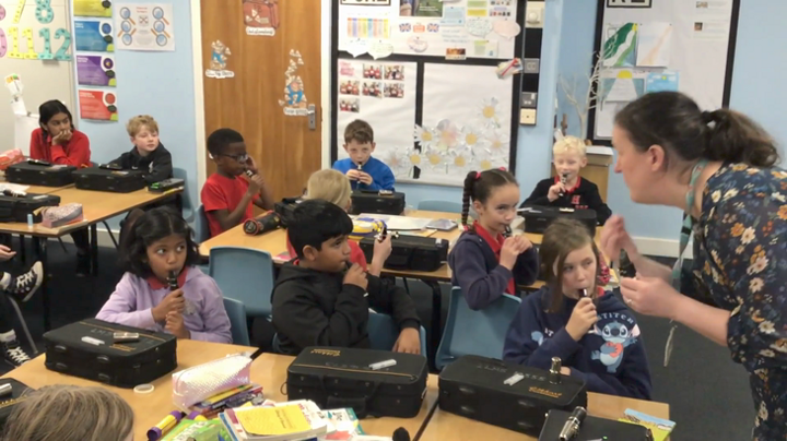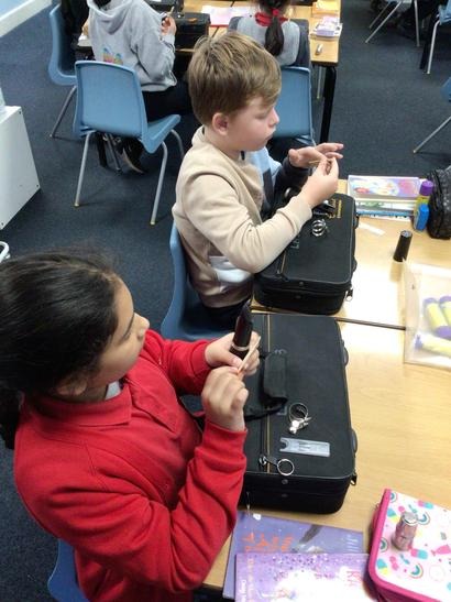 At the start of our clarinet lessons, we just used the mouth piece of the clarinet. This was so we could get used to the positioning of the clarinet in our mouth and how much force we needed to blow through the instrument. Our music teacher, Mrs Maddox, helps us a lot with this.
