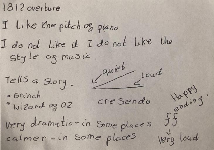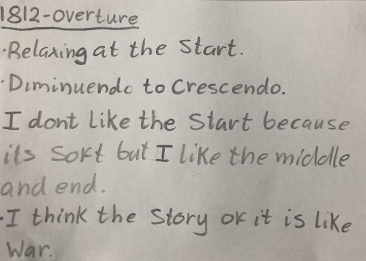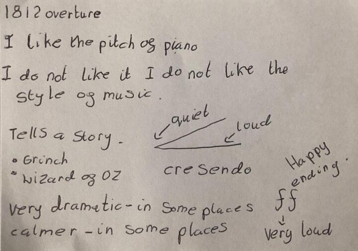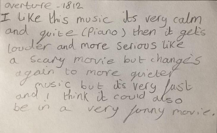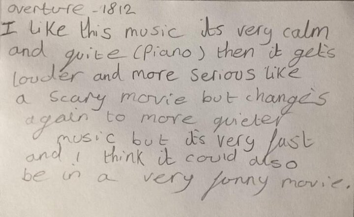 We listened to Tchaikovsky - 1812 Overture. We listened carefully to decide whether we like the piece of music.