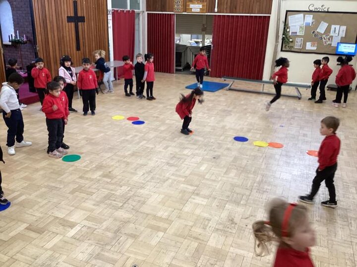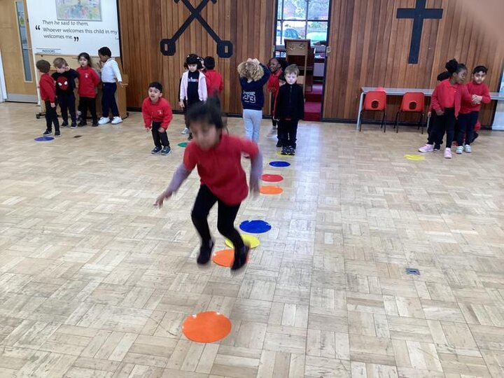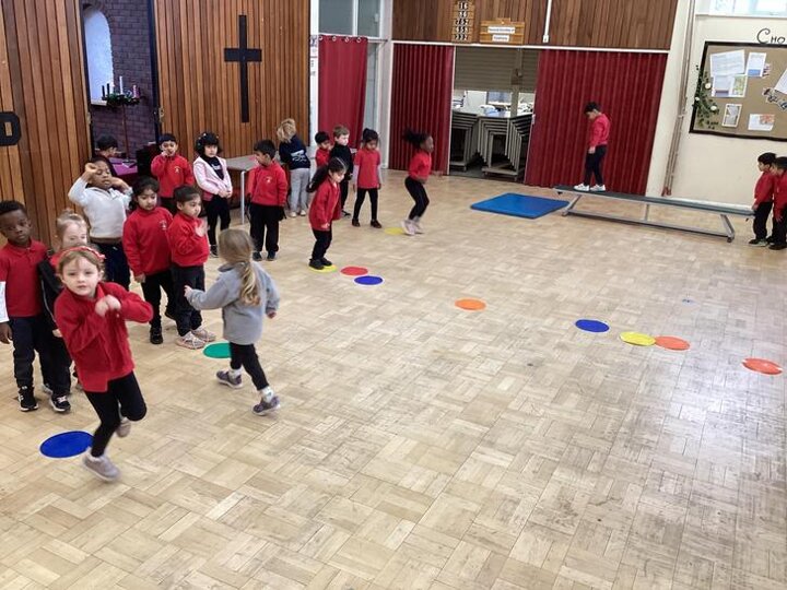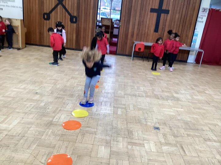 In PE the children have been practising hopping and jumping. We talked about keeping our feet together and lifting our feet off the ground.