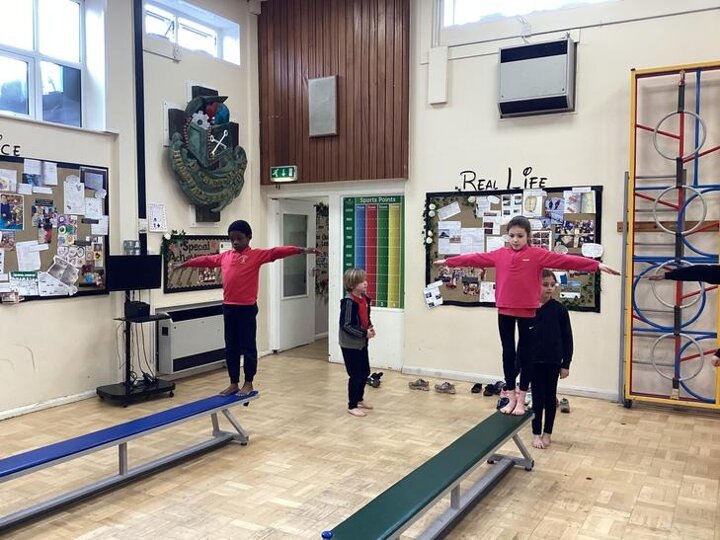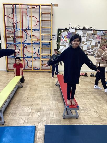 We have practiced a range of rolls and travels and started to incorporate these into our own gymnastic sequences. We were able to choose how we wanted to travel and whether to do a pencil roll or a teddy bear roll.