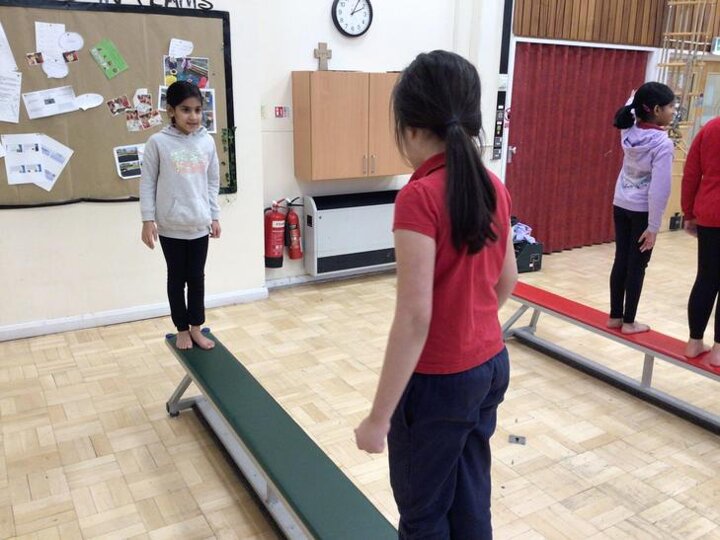 For our gymnastics unit, we worked together to create matched and mirrored balances.