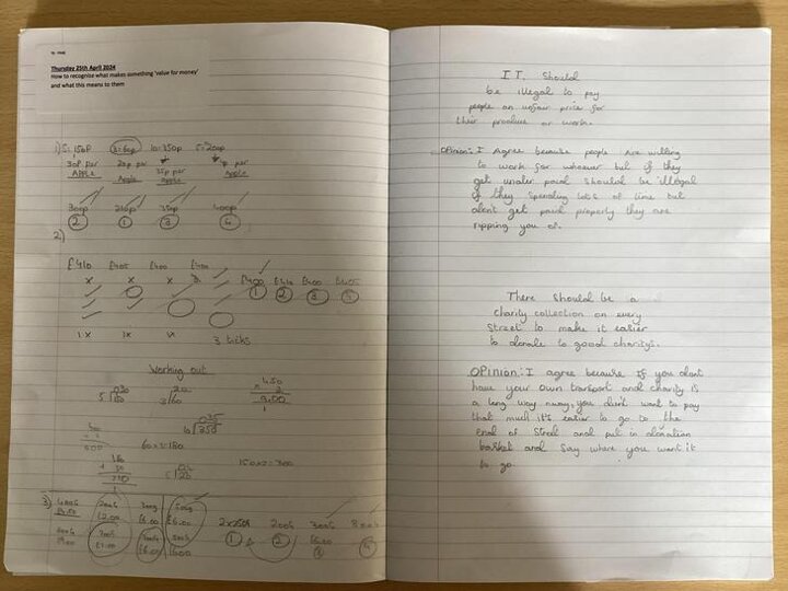 We have been learning about value for money. Sometimes we can use our maths knowledge to work it out and sometimes it depends on what we want to use the product for. We have also looked at the hidden costs such as how our choices impact other people or the environment.