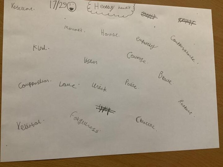 This week we have had a visit from Healthy Heads. We have looked at what makes our character and what adjectives best describe the character we want to have.