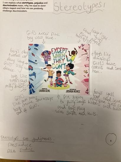 This week we have been reading about the definition of the words prejudice and stereotype and looking at what this might look like in real life. We have read the book 'Except When They Don't' and created a mind map to demonstrate stereotypes within the book.