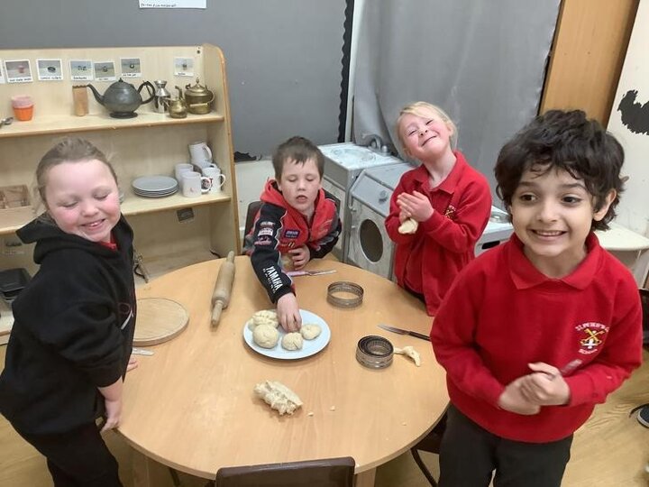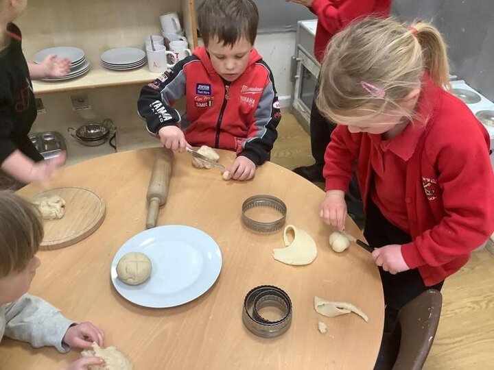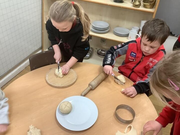 The children made hot cross buns and remembered to add a cross, the sign of Jesus.