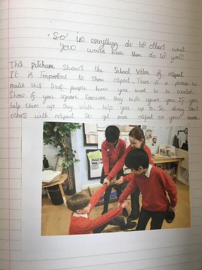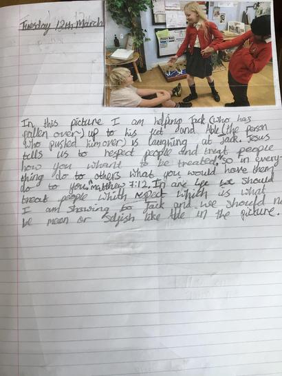 Matthew 7:12 “So in everything, do to others what you would have them do to you...” We took this bible verse and decided how it showed us about living our life.