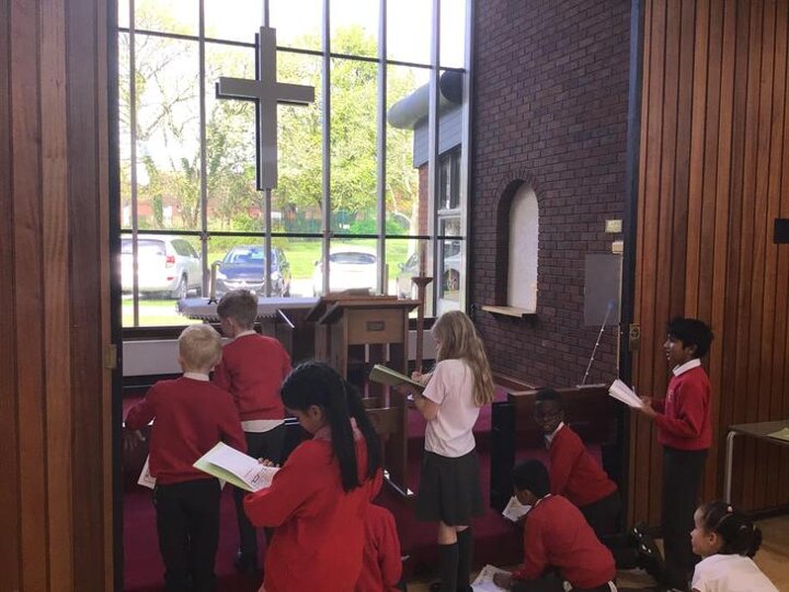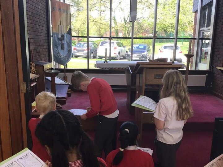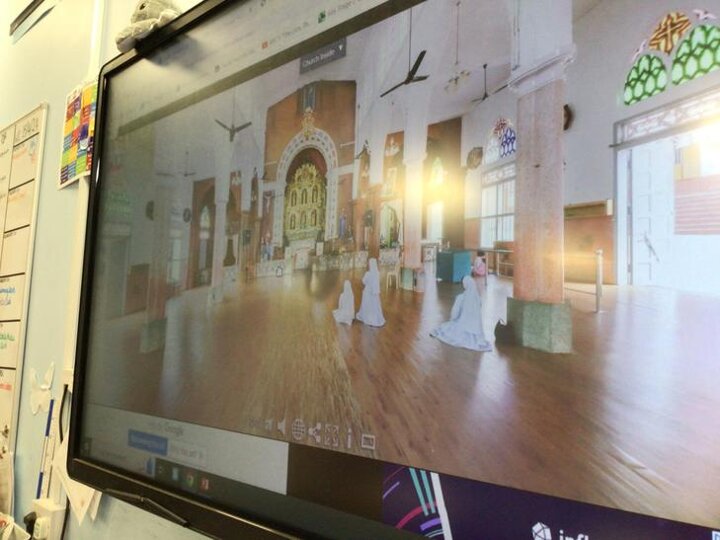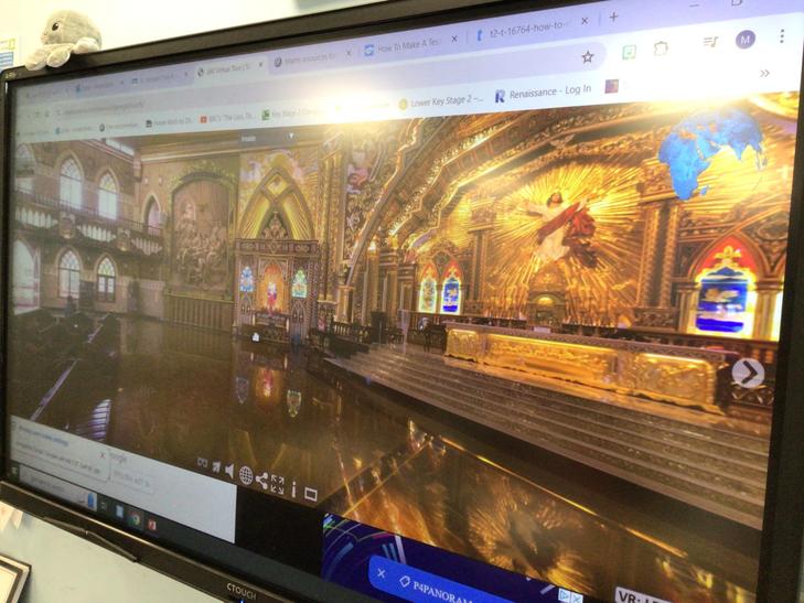 We used virtual reality to explore different churches and have a look what features we see in them. After we had looked in those, we then looked at our own chapel in our school.