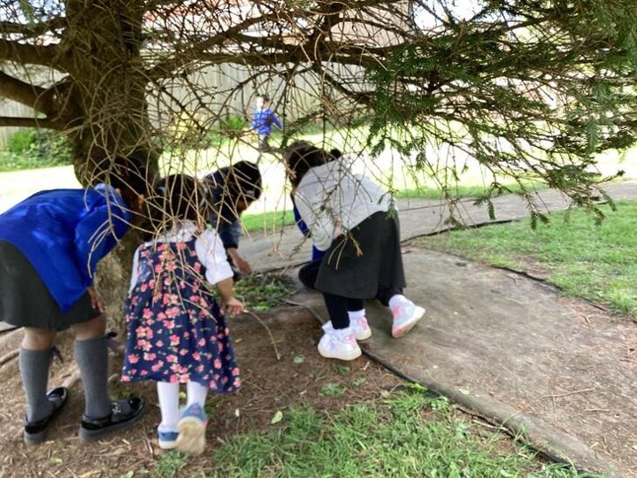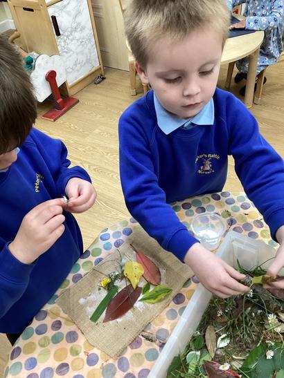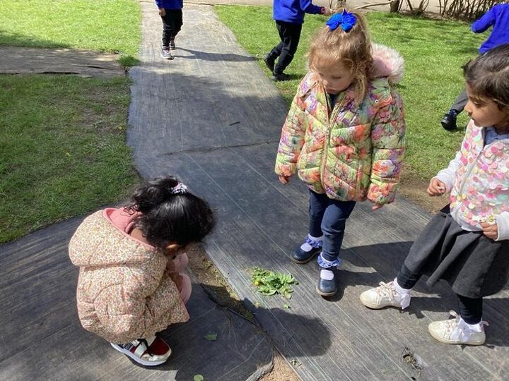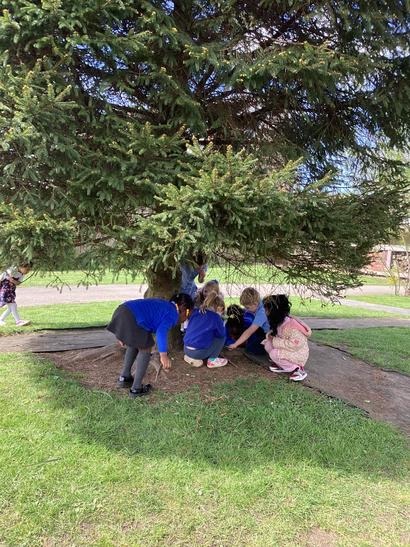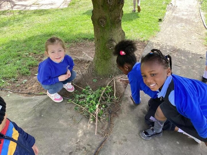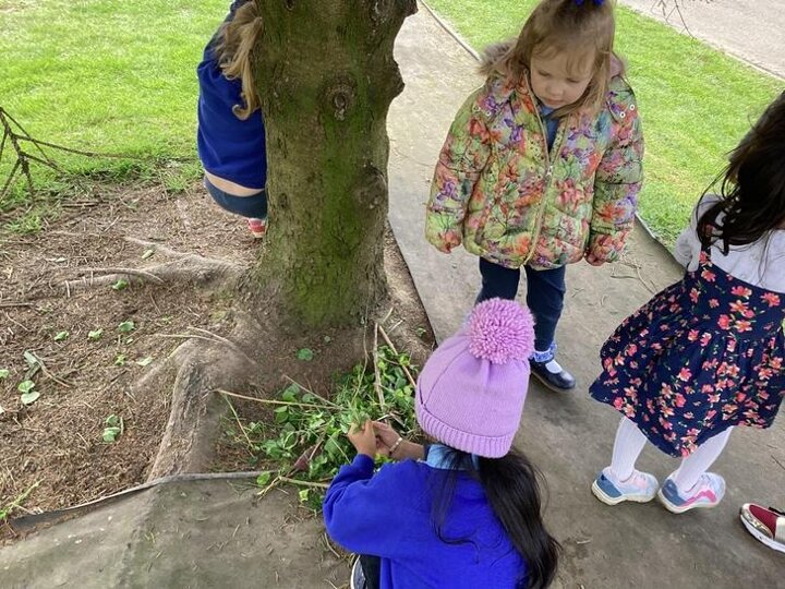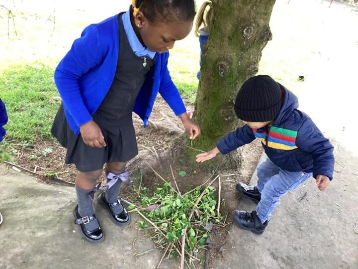 The children loved going on a Spring walk and found ladybirds, beetles, blossom, daisies, dandelions. Groups of children decided to make a home for the ladybirds, working in teams. They collected leaves together.