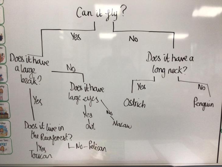 Moving on to classification keys, as a class we selected what group of animals we wanted to use. We picked the birds and then created questions as a class and created our year 4 classification key for this group of birds.