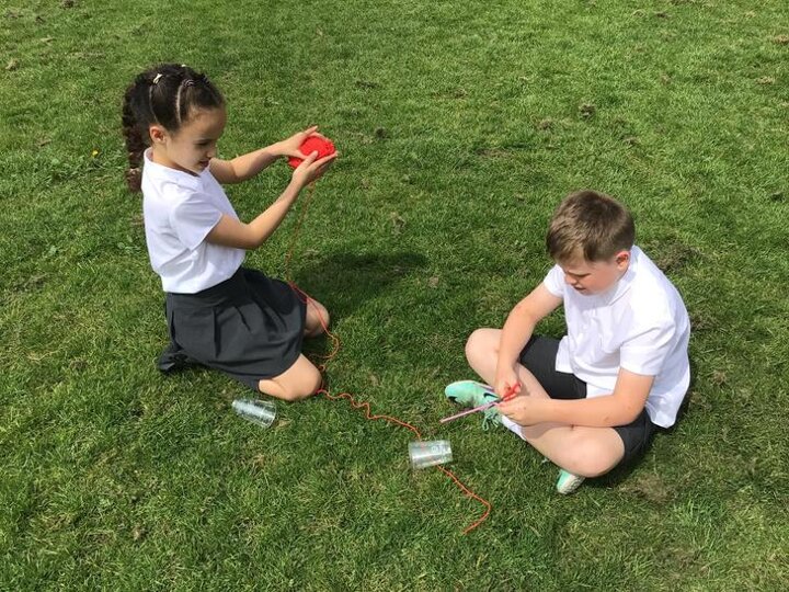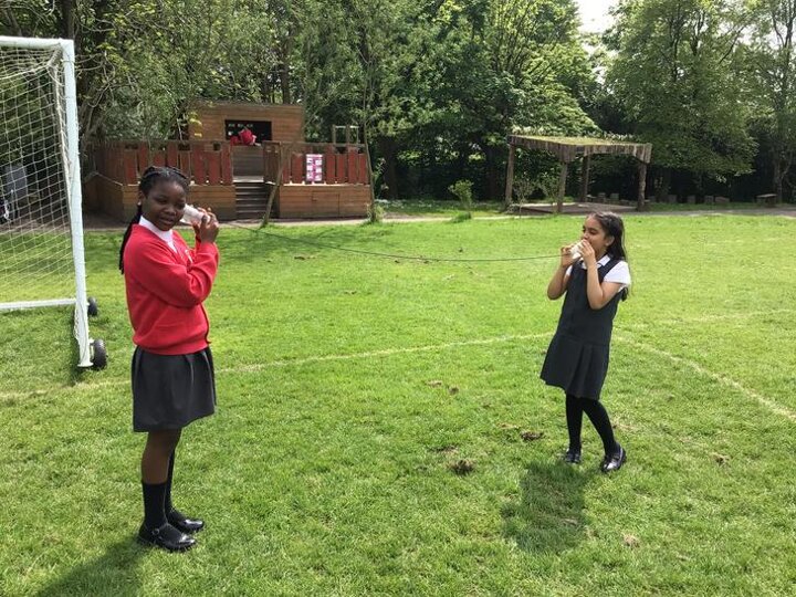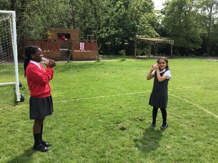 As part of our sound unit, we created cup telephones in the style of Graham Alexander Bell to show how the vibrations from the sound of our voice travels through the string.
